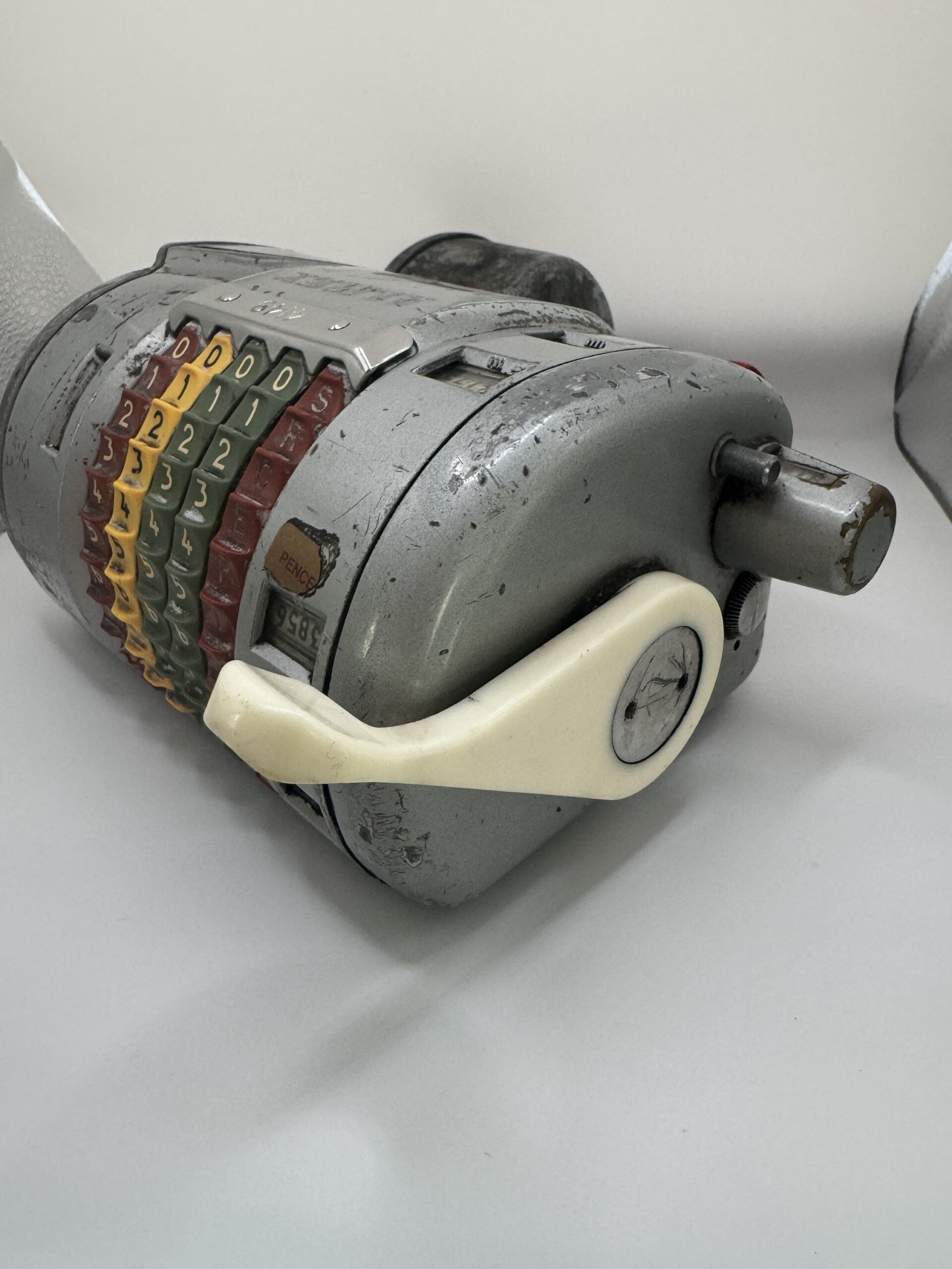 The machine appears to be in working order all dials move with ease and issue handle in good working order too.