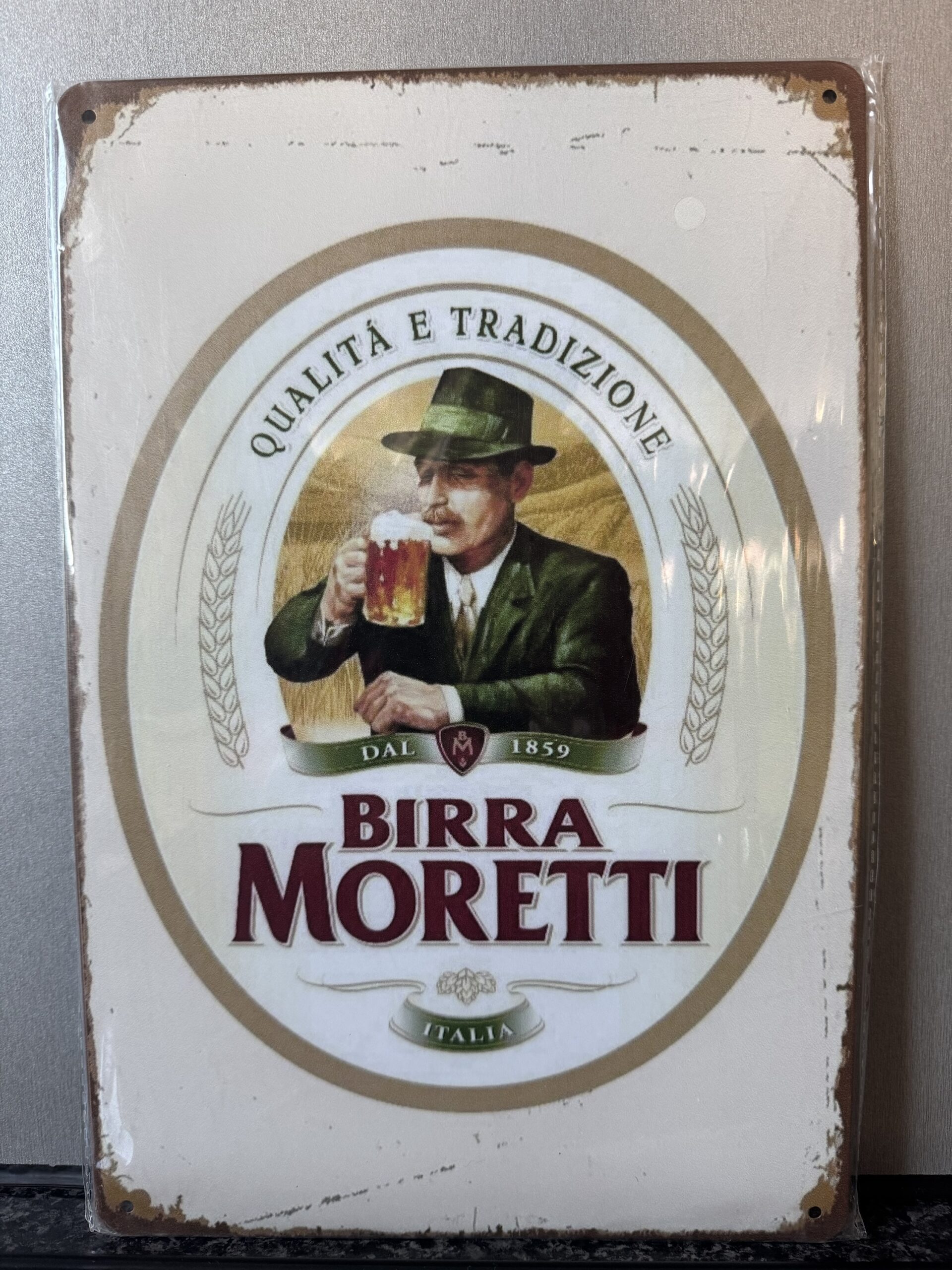 Here we have this ‘Birra Moretti’ Vintage Retro enamel wall sign.