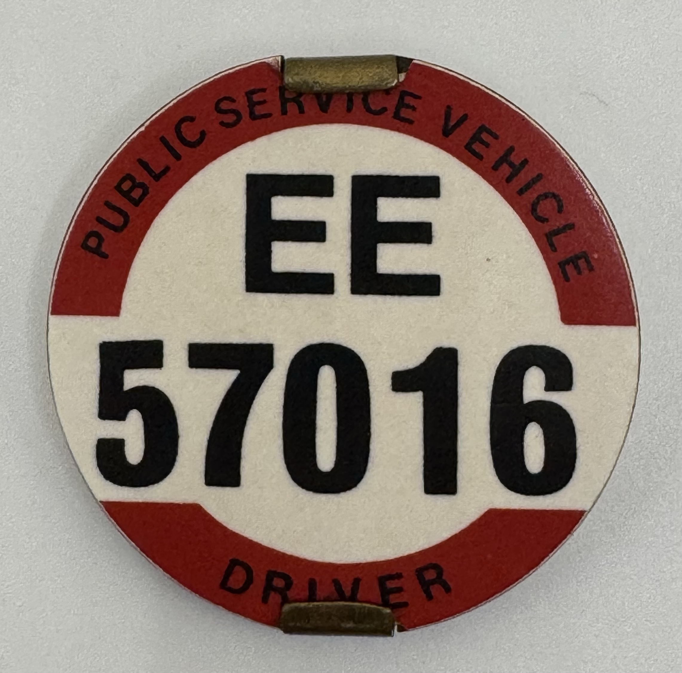 A rare opportunity to purchase this PSV drivers badge EE 57016 from The East Midlands Traffic Area. This badge is in the grotesque font that being the last of the old style badges produced circa 1979.