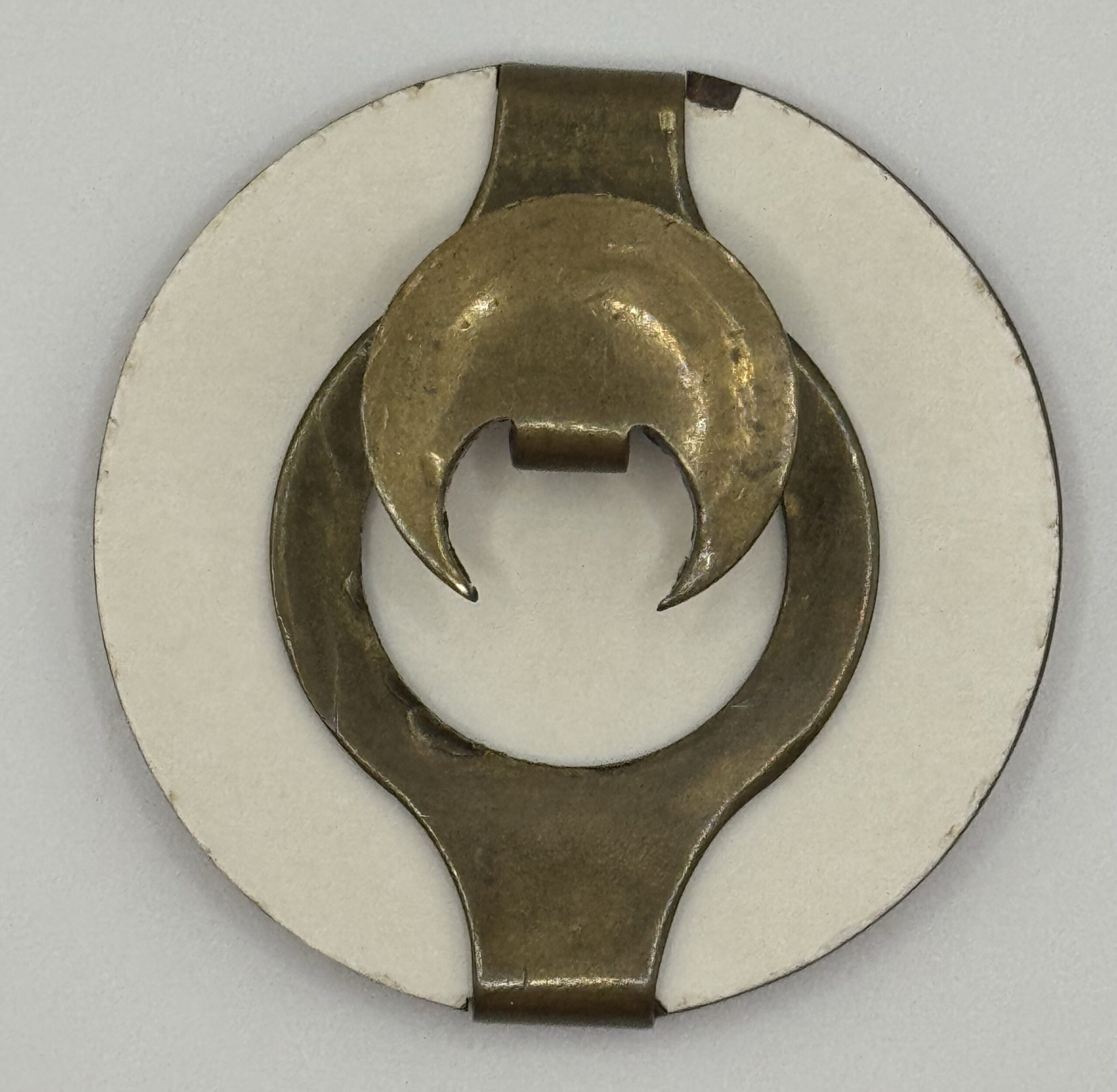 It’s in very good condition with no visible scratches or chips to the badge and the brass half moon pin on the reverse is all good and intact.